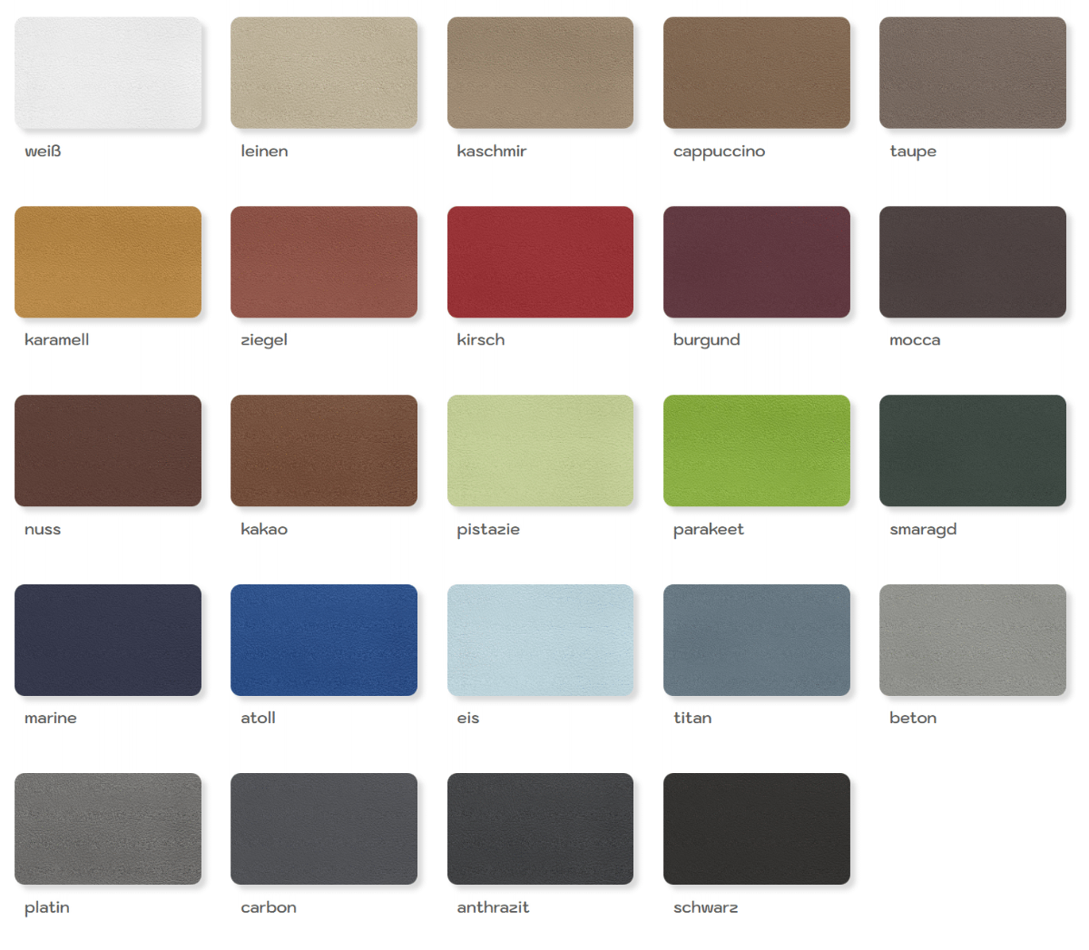 Kundenfarben auf Anfrage möglich! Senden Sie uns einfach Ihr gewünschtes Farbmuster oder RAL-Code – wir prüfen die Machbarkeit.